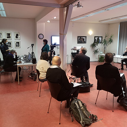 „Meine Rolle war zuerst die der „technischen Moderatorin“, d.h. ich habe von zu Hause aus die Teilnehmer*innen im Konferenztool technisch betreut, ihnen gezeigt, wie sie Ton und Kamera an- und ausschalten, wo der Chat ist etc. Ich habe sie zu Beginn der Konferenz offiziell begrüßt und ihnen nach jedem Beitrag mitgeteilt, wann es womit weitergeht. So war ich plötzlich im Gespräch mit lauter Kirchenrechtler*innen aus dem ganzen Bundesgebiet.